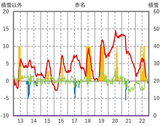 | 日 | 時 | 気温 | 降水 | 風向/風速 | 日照 | 積雪 | 降雪 |