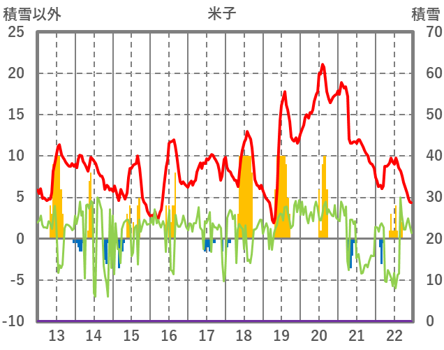 | 日 | 時 | 気温 | 降水 | 風向/風速 | 日照 | 積雪 | 降雪 |