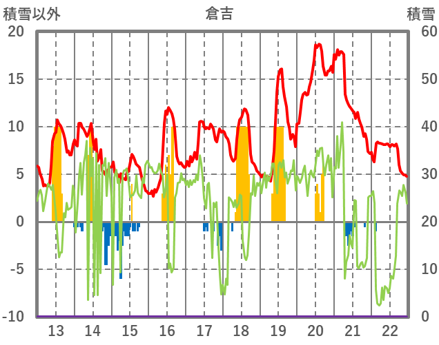 | 日 | 時 | 気温 | 降水 | 風向/風速 | 日照 | 積雪 | 降雪 |