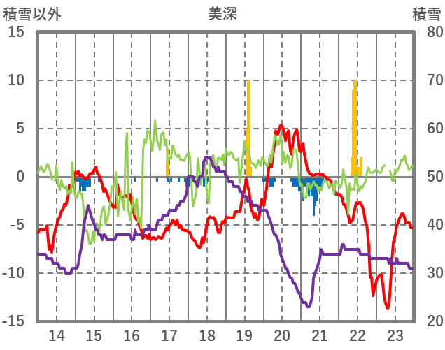 | 日 | 時 | 気温 | 降水 | 風向/風速 | 日照 | 積雪 | 降雪 |