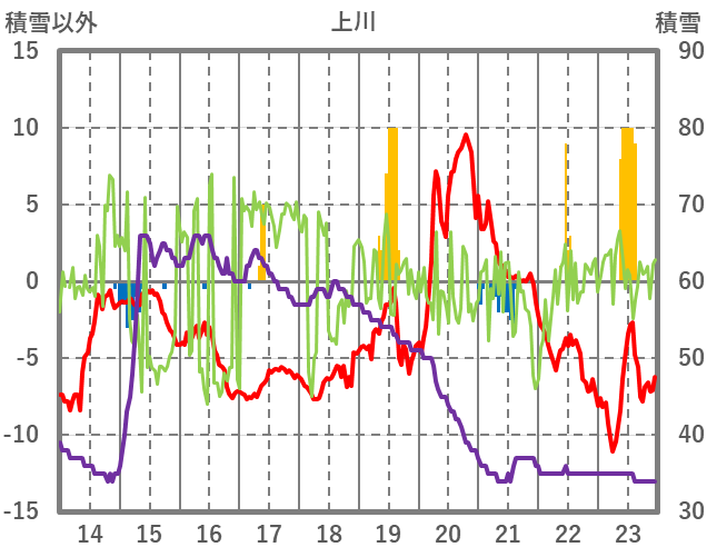 | 日 | 時 | 気温 | 降水 | 風向/風速 | 日照 | 積雪 | 降雪 |