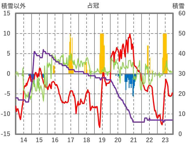 | 日 | 時 | 気温 | 降水 | 風向/風速 | 日照 | 積雪 | 降雪 |