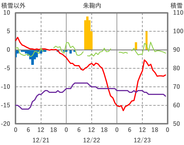 | 日 | 時 | 気温 | 降水 | 風向/風速 | 日照 | 積雪 | 降雪 |