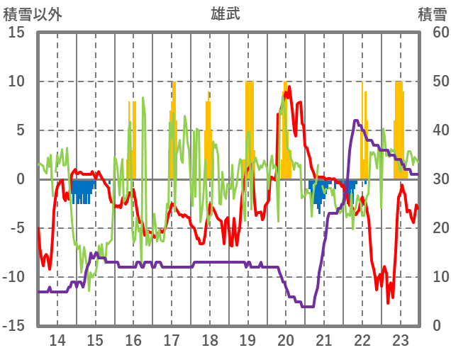 | 日 | 時 | 気温 | 降水 | 風向/風速 | 日照 | 積雪 | 降雪 |