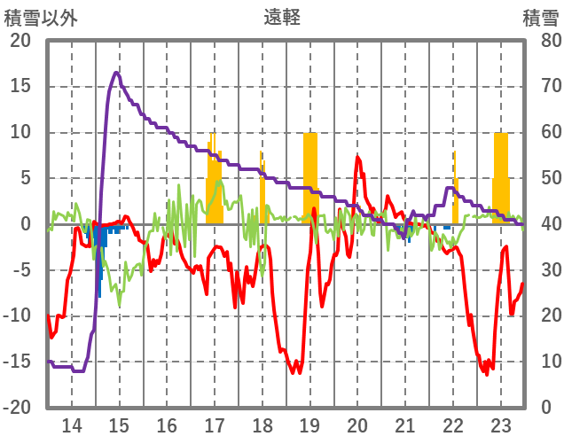 | 日 | 時 | 気温 | 降水 | 風向/風速 | 日照 | 積雪 | 降雪 |