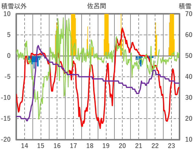 | 日 | 時 | 気温 | 降水 | 風向/風速 | 日照 | 積雪 | 降雪 |