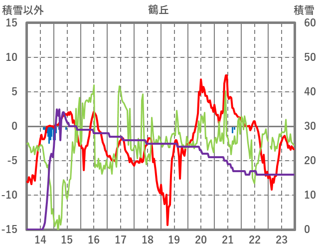 | 日 | 時 | 気温 | 降水 | 風向/風速 | 日照 | 積雪 | 降雪 |