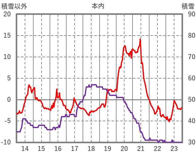 | 日 | 時 | 気温 | 降水 | 風向/風速 | 日照 | 積雪 | 降雪 |