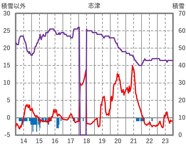 | 日 | 時 | 気温 | 降水 | 風向/風速 | 日照 | 積雪 | 降雪 |
