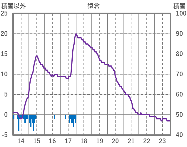 | 日 | 時 | 気温 | 降水 | 風向/風速 | 日照 | 積雪 | 降雪 |