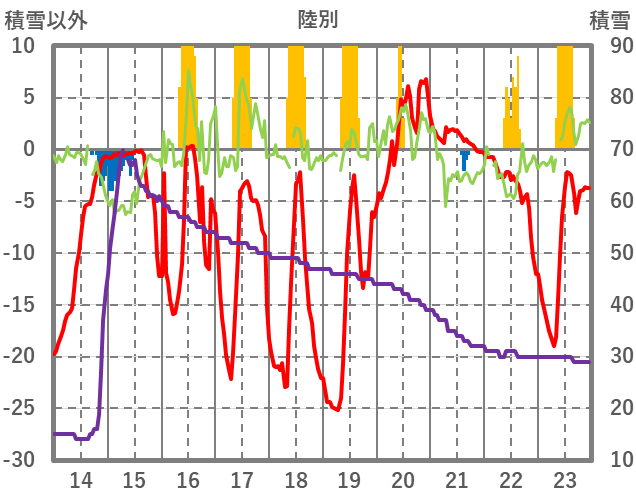 | 日 | 時 | 気温 | 降水 | 風向/風速 | 日照 | 積雪 | 降雪 |