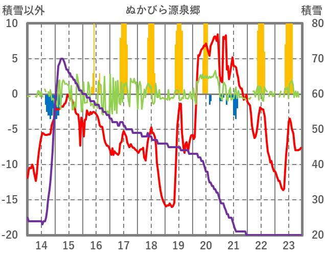 | 日 | 時 | 気温 | 降水 | 風向/風速 | 日照 | 積雪 | 降雪 |