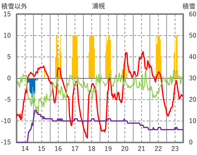 | 日 | 時 | 気温 | 降水 | 風向/風速 | 日照 | 積雪 | 降雪 |