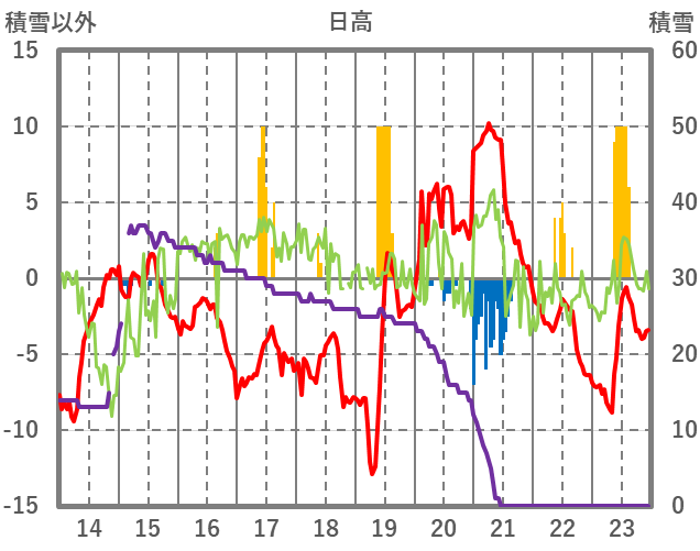 | 日 | 時 | 気温 | 降水 | 風向/風速 | 日照 | 積雪 | 降雪 |