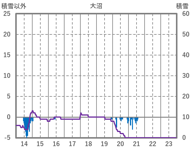 | 日 | 時 | 気温 | 降水 | 風向/風速 | 日照 | 積雪 | 降雪 |