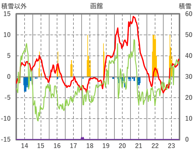 | 日 | 時 | 気温 | 降水 | 風向/風速 | 日照 | 積雪 | 降雪 |