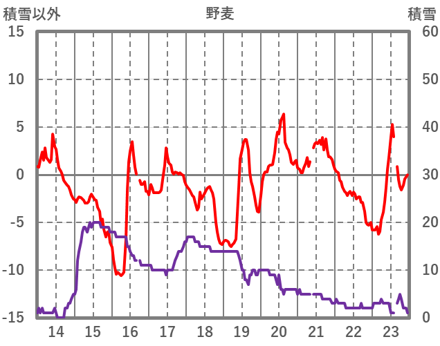 | 日 | 時 | 気温 | 降水 | 風向/風速 | 日照 | 積雪 | 降雪 |
