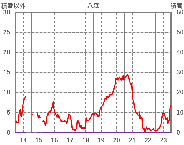 | 日 | 時 | 気温 | 降水 | 風向/風速 | 日照 | 積雪 | 降雪 |