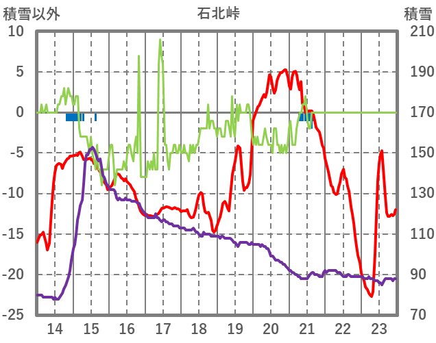 | 日 | 時 | 気温 | 降水 | 風向/風速 | 日照 | 積雪 | 降雪 |