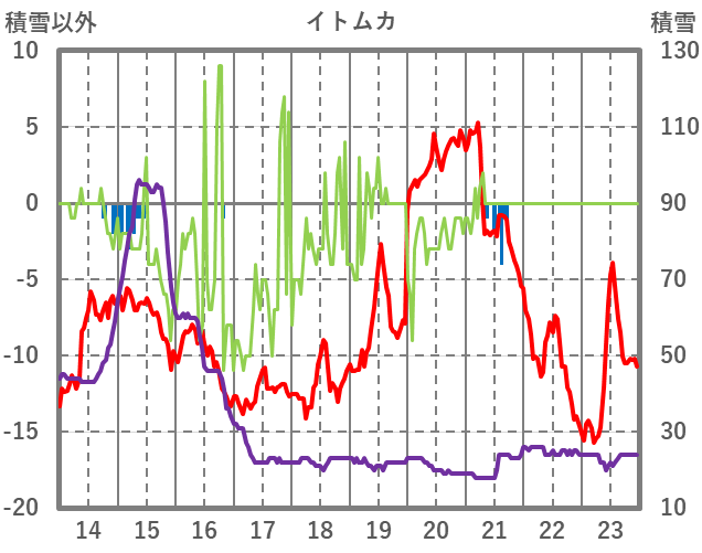 | 日 | 時 | 気温 | 降水 | 風向/風速 | 日照 | 積雪 | 降雪 |