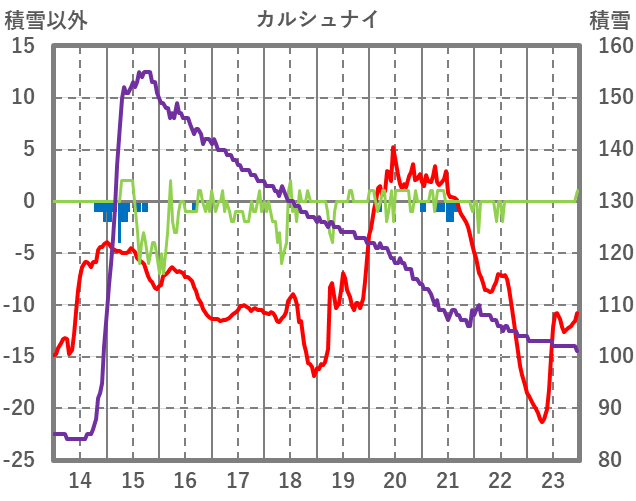| 日 | 時 | 気温 | 降水 | 風向/風速 | 日照 | 積雪 | 降雪 |