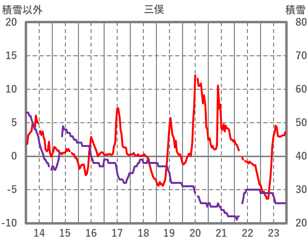 | 日 | 時 | 気温 | 降水 | 風向/風速 | 日照 | 積雪 | 降雪 |