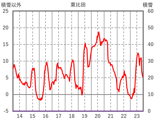 | 日 | 時 | 気温 | 降水 | 風向/風速 | 日照 | 積雪 | 降雪 |