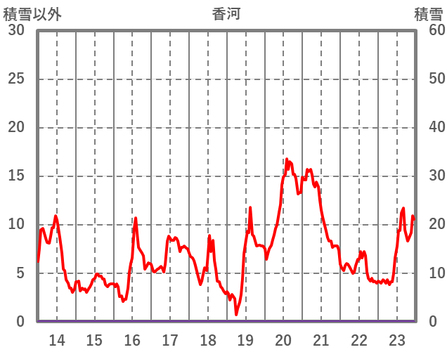 | 日 | 時 | 気温 | 降水 | 風向/風速 | 日照 | 積雪 | 降雪 |