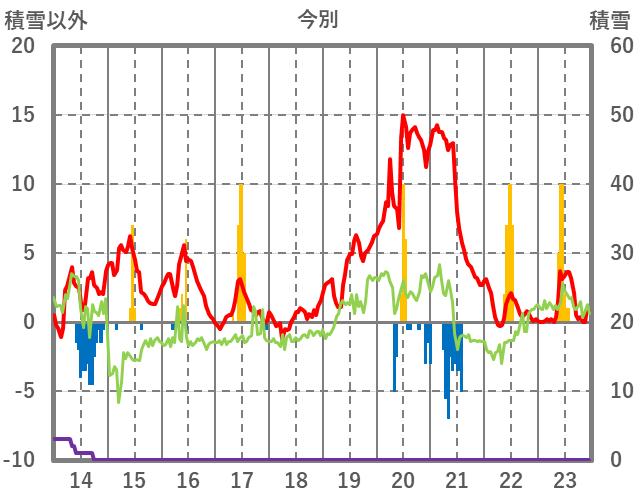| 日 | 時 | 気温 | 降水 | 風向/風速 | 日照 | 積雪 | 降雪 |