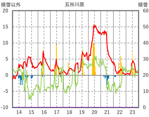 | 日 | 時 | 気温 | 降水 | 風向/風速 | 日照 | 積雪 | 降雪 |