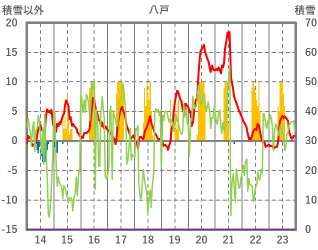 | 日 | 時 | 気温 | 降水 | 風向/風速 | 日照 | 積雪 | 降雪 |