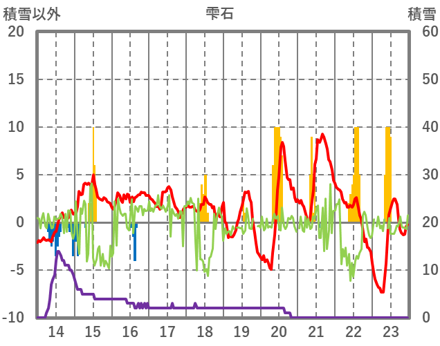 | 日 | 時 | 気温 | 降水 | 風向/風速 | 日照 | 積雪 | 降雪 |