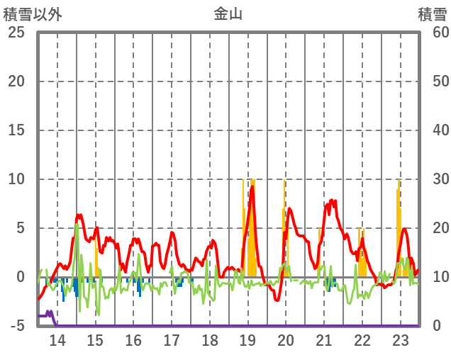 | 日 | 時 | 気温 | 降水 | 風向/風速 | 日照 | 積雪 | 降雪 |
