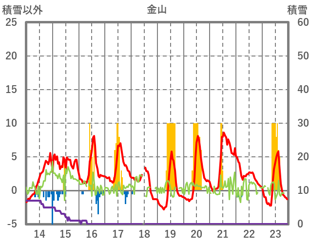 | 日 | 時 | 気温 | 降水 | 風向/風速 | 日照 | 積雪 | 降雪 |
