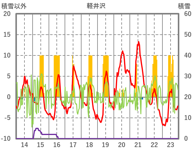 | 日 | 時 | 気温 | 降水 | 風向/風速 | 日照 | 積雪 | 降雪 |
