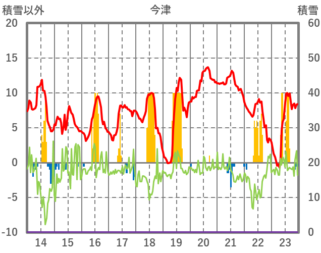 | 日 | 時 | 気温 | 降水 | 風向/風速 | 日照 | 積雪 | 降雪 |