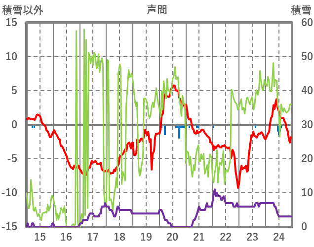 | 日 | 時 | 気温 | 降水 | 風向/風速 | 日照 | 積雪 | 降雪 |