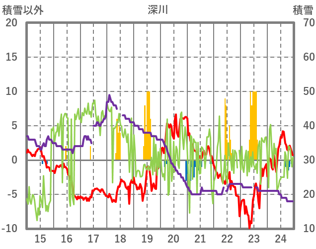 | 日 | 時 | 気温 | 降水 | 風向/風速 | 日照 | 積雪 | 降雪 |