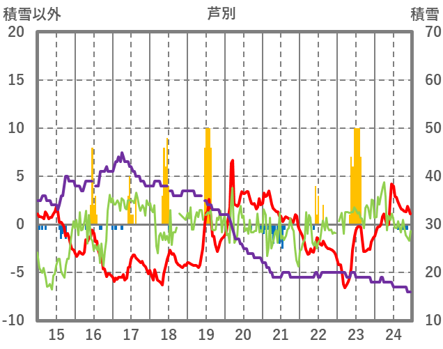 | 日 | 時 | 気温 | 降水 | 風向/風速 | 日照 | 積雪 | 降雪 |
