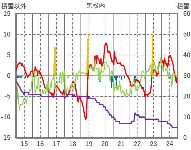 | 日 | 時 | 気温 | 降水 | 風向/風速 | 日照 | 積雪 | 降雪 |