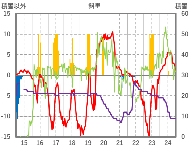 | 日 | 時 | 気温 | 降水 | 風向/風速 | 日照 | 積雪 | 降雪 |