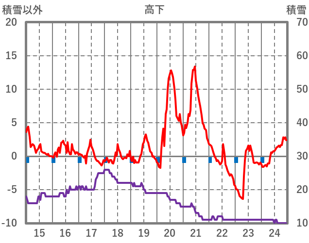 | 日 | 時 | 気温 | 降水 | 風向/風速 | 日照 | 積雪 | 降雪 |