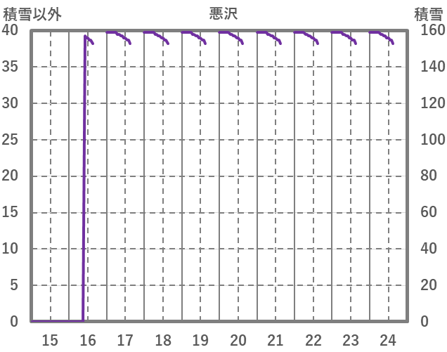 | 日 | 時 | 気温 | 降水 | 風向/風速 | 日照 | 積雪 | 降雪 |