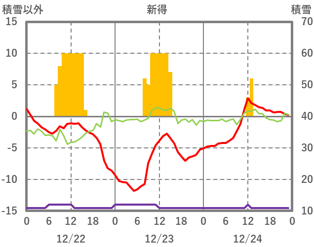 | 日 | 時 | 気温 | 降水 | 風向/風速 | 日照 | 積雪 | 降雪 |