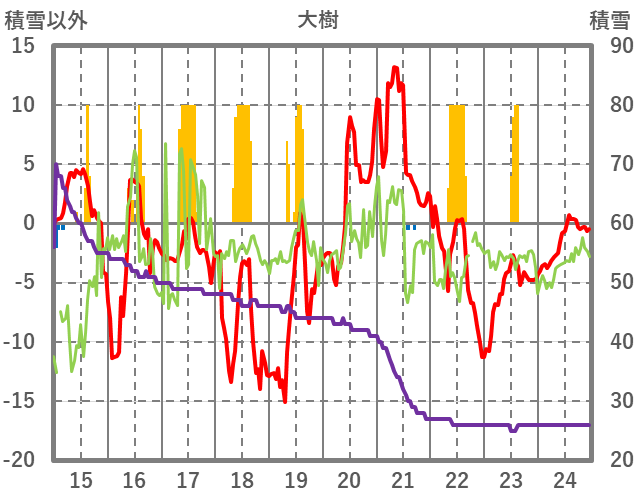 | 日 | 時 | 気温 | 降水 | 風向/風速 | 日照 | 積雪 | 降雪 |