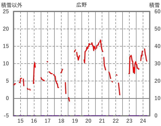 | 日 | 時 | 気温 | 降水 | 風向/風速 | 日照 | 積雪 | 降雪 |