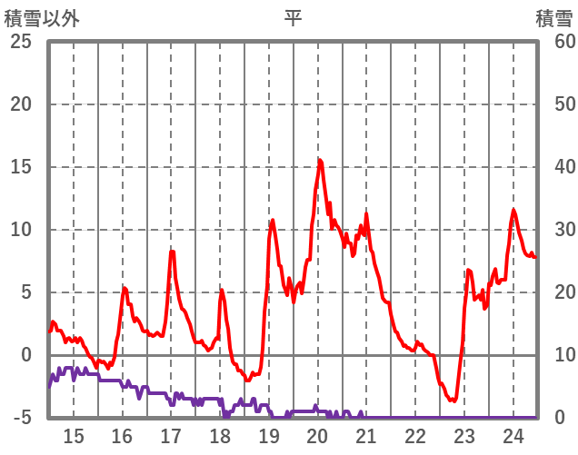 | 日 | 時 | 気温 | 降水 | 風向/風速 | 日照 | 積雪 | 降雪 |