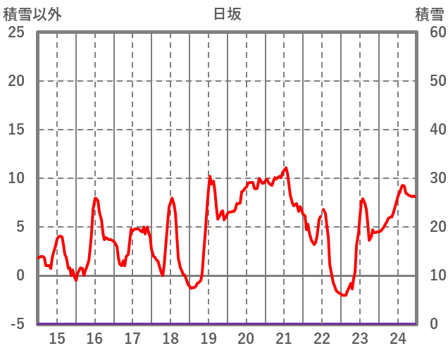 | 日 | 時 | 気温 | 降水 | 風向/風速 | 日照 | 積雪 | 降雪 |