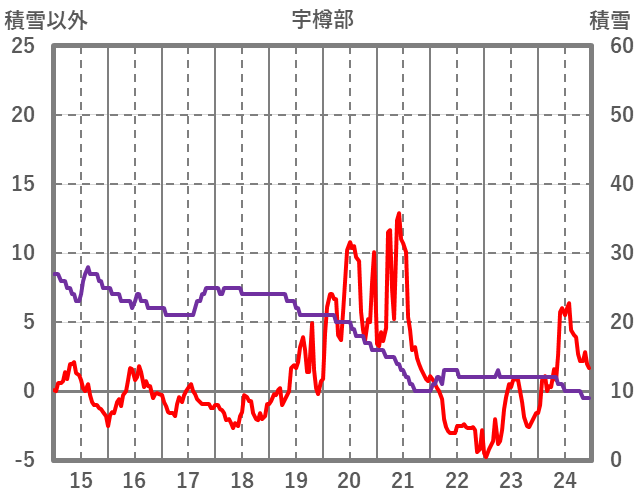 | 日 | 時 | 気温 | 降水 | 風向/風速 | 日照 | 積雪 | 降雪 |