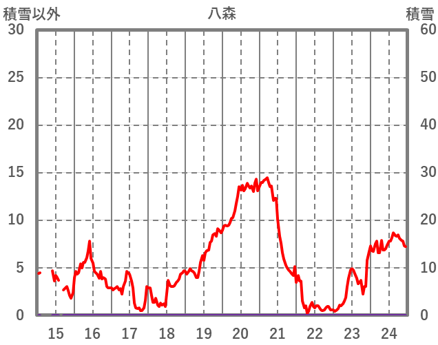 | 日 | 時 | 気温 | 降水 | 風向/風速 | 日照 | 積雪 | 降雪 |